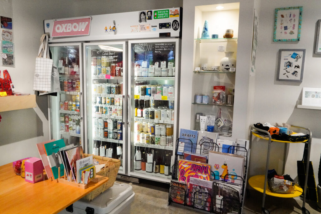 あとは、店内で飲食ができるようになったのが最も大きな違いですね。冷蔵庫には国内外から仕入れたクラフトビールが、本棚の裏にはセラーもあり、ワインも楽しんでいただけます。