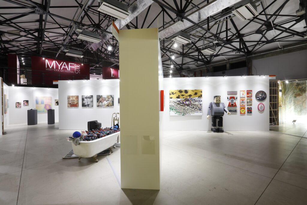古後: 2022年の初回は恵比寿で開催しましたが、会場の使用面積に限りがあり、さらなるコンテンツ拡張に対して制約がありました。「MEET YOUR ART FESTIVAL」は、アートエキシビション、アートフェア、ライブ、マーケットなど、多彩なコンテンツが同時に展開される大規模な複合型フェスティバルです。それぞれが独立しながらも一体感を生むためには、複数の会場を有し、全体を受け止められる街の構造が欠かせません。天王洲は、充実した会場インフラに加え、アートを起点に街づくりが進められてきた背景やその精神性が基盤にあり、地域との連携もしやすい環境が整っていたことが決め手となりました。また、もう少し広く見ると東京という都市において運河がある、つまり水脈と密接しているというのは日本という国の風土と深く繋がっているということにもなる。そうした場所から、アートを中心としたカルチャーを発信していくことには大きな意義があります。特に本年はそういった意味でキュレーター陣とは水脈をひとつのキーワードとして共有していました。
