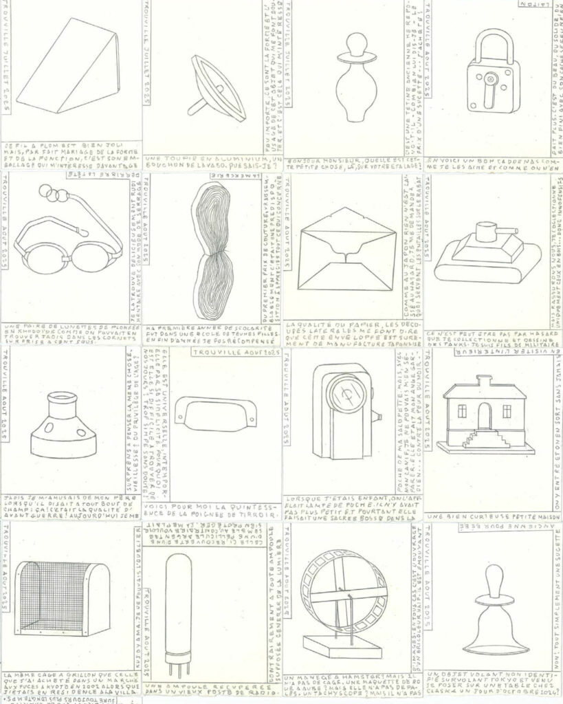 2025年に刊行された「DIARY」は、彼が10年間にわたり描きつづけたオブジェ日記の12冊を1つにまとめたもので、極めてささやかで、取るに足らない日常的なものたちのドローイングが576点収録されている。