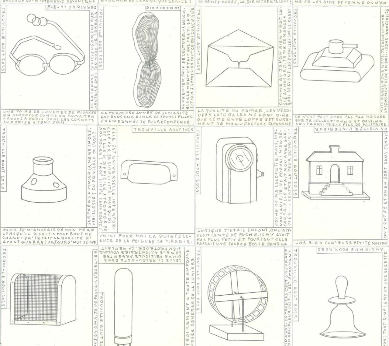2025年に刊行された「DIARY」は、彼が10年間にわたり描きつづけたオブジェ日記の12冊を1つにまとめたもので、極めてささやかで、取るに足らない日常的なものたちのドローイングが576点収録されている。