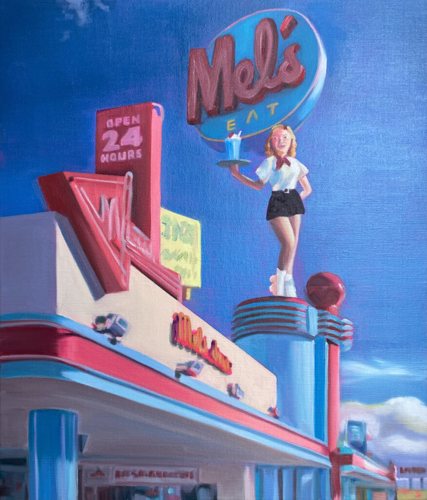 本展では、郊外のガソリンスタンドや住宅街、夕暮れの公園など、一見どこにでもある場所を舞台にした作品を通じ、日常の奥にひそむ物語性や、そこから立ち上がる感情の揺らぎに焦点を当てる。