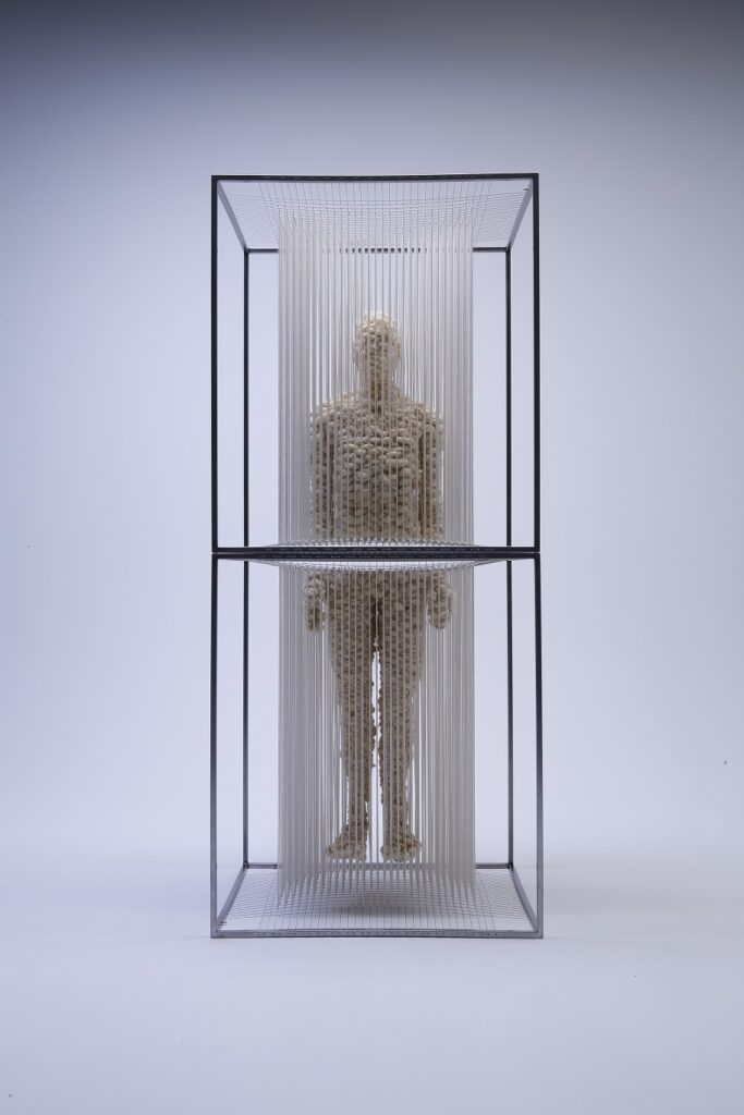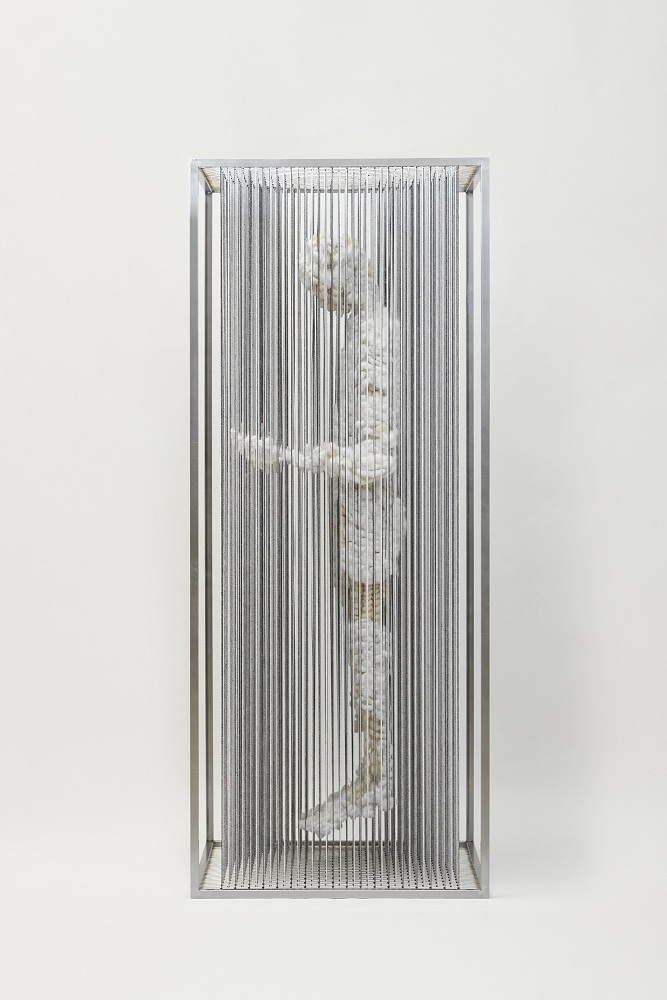 「存在と不在」、「ミクロとマクロ」、「0と1」や「有と無」といった我々や存在の原始的な姿を繊維というミクロな素材を用いながら彫刻作品へと昇華させる、黒瀧藍玖。相対する世界の間に位置する多層的なレイヤーを行き来しながら、現代における人間の存在と私たちが知覚する世界に、疑いと新たな視点を描き出す。