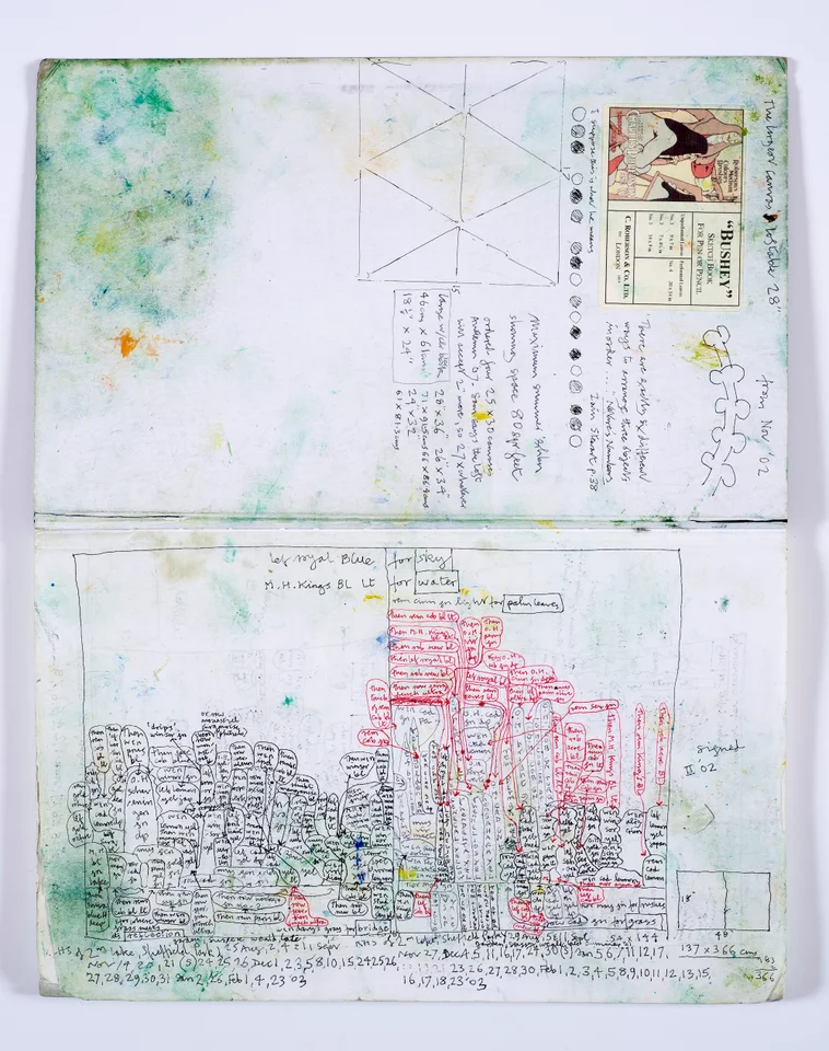 ひとつのキャンバスに複数の空間表現や異なる時間軸を織り込む独自のスタイルは、その後、イギリス各地の庭園や旅先の風景へと主題が広がる過程でさらなる展開を見せている。
