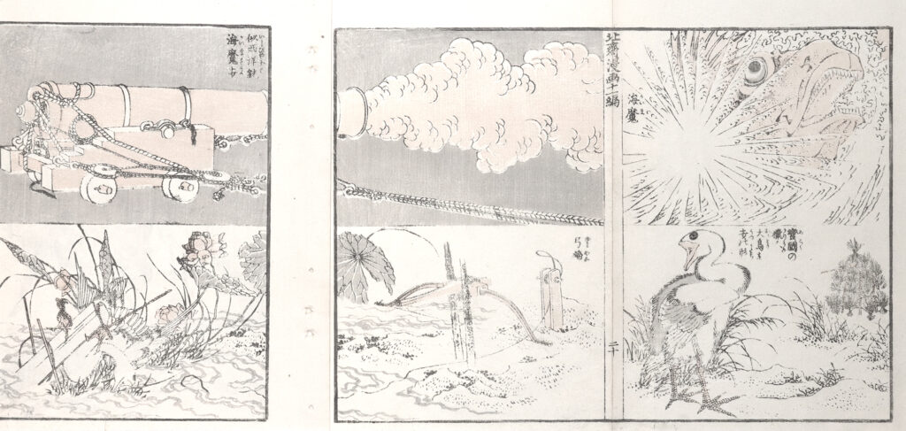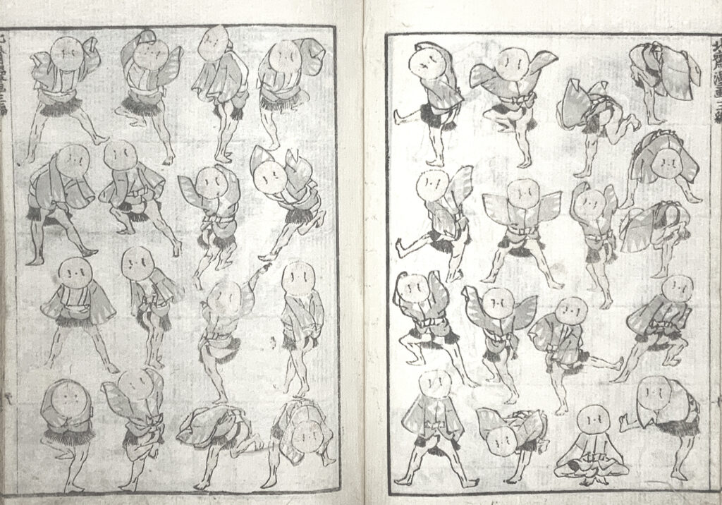 北斎の代表作であり、西洋で巻き起こったジャポニスムの要因の一つとも言われる、北斎漫画。絵手本(絵の教科書)でありながらも鑑賞性が高く、絵師を志す者の他に市井の人々も買い求めるベストセラー作品であった。