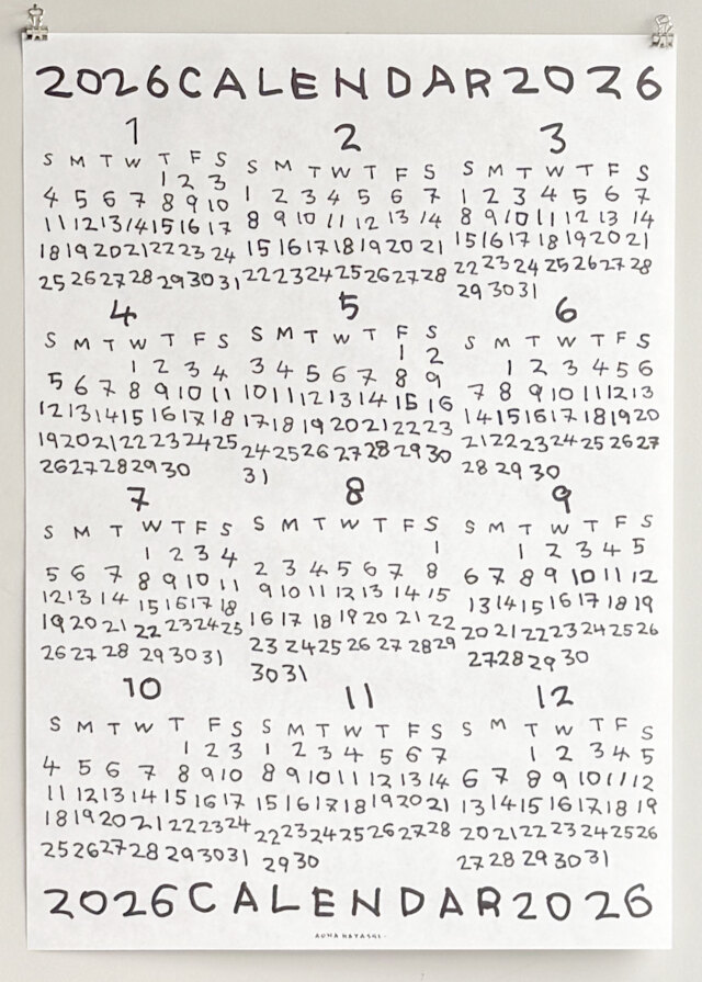 暦をモチーフに描いたポスター「AONAHAYASHI 2026 POSTER」の数量限定販売も。毎年画材を変えて作品の表情を変化させており、2026年はフェルトペンを使用。