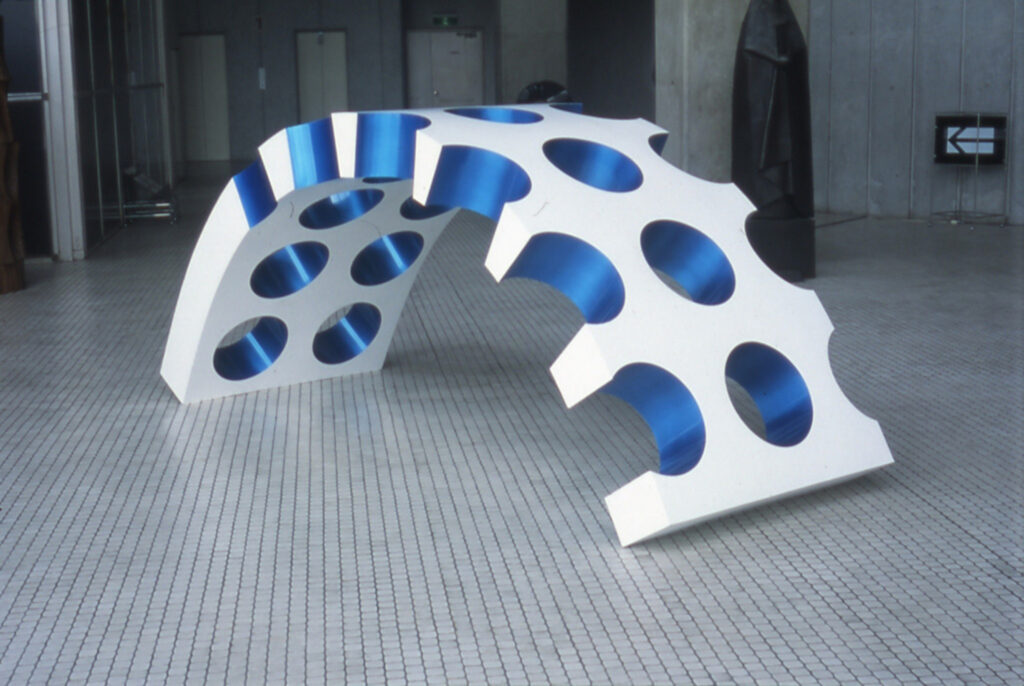 「戦後美術の円・環」で注目したいのは、円や環などの姿をとってあらわれる、さまざまな「まるい形」。単純明快、ゆえに美術家のさまざまな意図を受け止めうるその形は、とりわけ戦後日本美術のなかに繰り返し登場してきた。幾何学的形態でありながら角がなく、しかし有機的形態のようには決して不定形でも不規則でもない。その意味で「どっちつかず」なまるは、いかなる役割を担ってきたのか。本特集展示は、いくつかの視点を設けつつ、こうした問いについて考えることを試みる。
