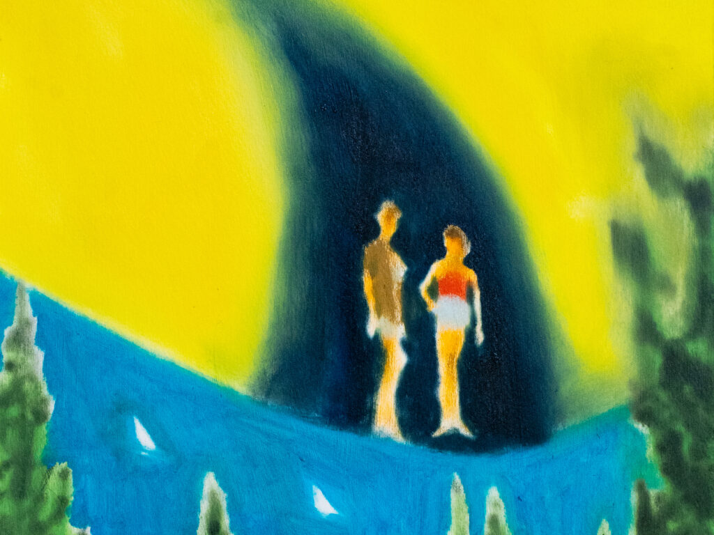 彼の作品の画面には、風景や人物、光の気配などが断片的に描かれ、ひとつの物語として固定されることなく、見る人の視線によって関係性が変化する。