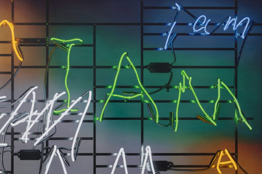 作品に通底しているのは、目に見える形の背後にある存在や関係性へと目を向ける姿勢。2016年より展開される「Neon」シリーズでは配電線やフレームを克明に描写することで構造を支える「見えない存在」の可視化を試み、「筆跡のトレース」を探求した近年の「Shape of Your Words」シリーズでは、他者の存在を受け入れ、その関係性を見つめる表現へと広がりつつある。