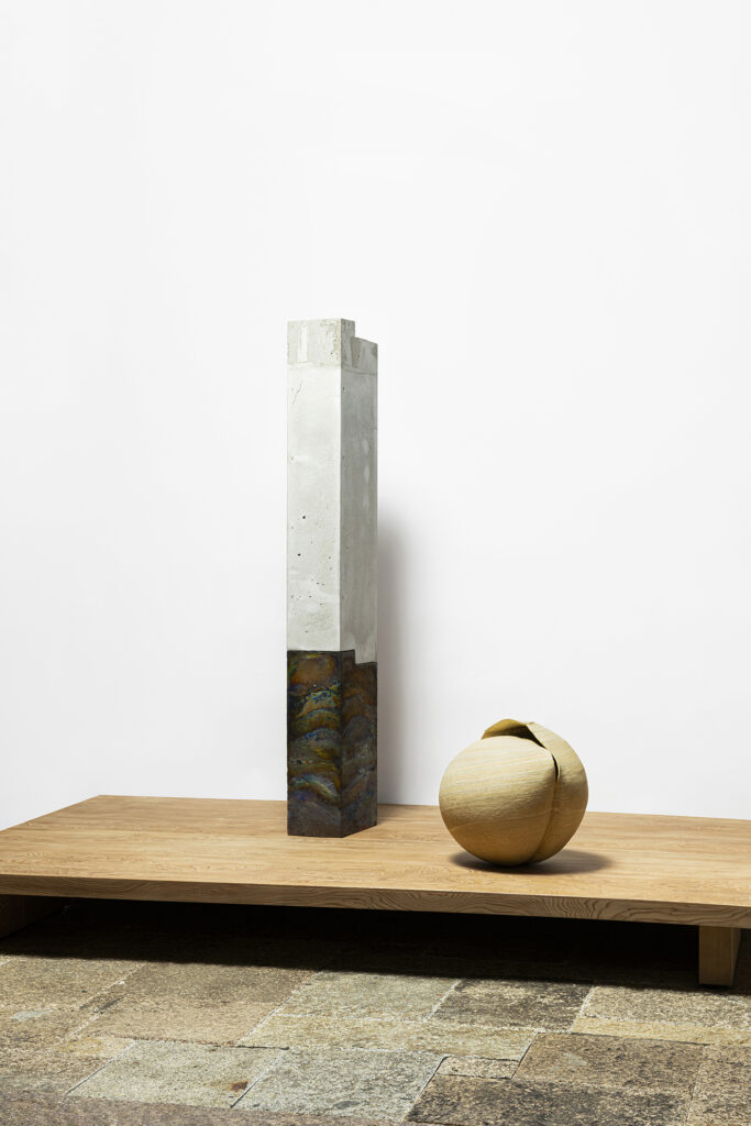 滋賀県信楽を拠点に活動。球体や多面体などのミニマルな形態を手捻りで成形し、金属を含んだ釉薬と炭化焼成によって独自の質感と色彩を獲得する。大型作品は空間そのものと呼応し、設置される場に新たな風景を生み出す。近年は陶とモルタルを組み合わせ、歪みや割れと精緻な直線を対置させることで、新たな知覚領域を切り拓いている。幼少期の自然や造形への関心を背景に制作を続け、2019年LOEWE Craft Prizeファイナリストに選出。作品はV&AやLACMAなど世界の美術館に収蔵され、国際的にも評価されている。
