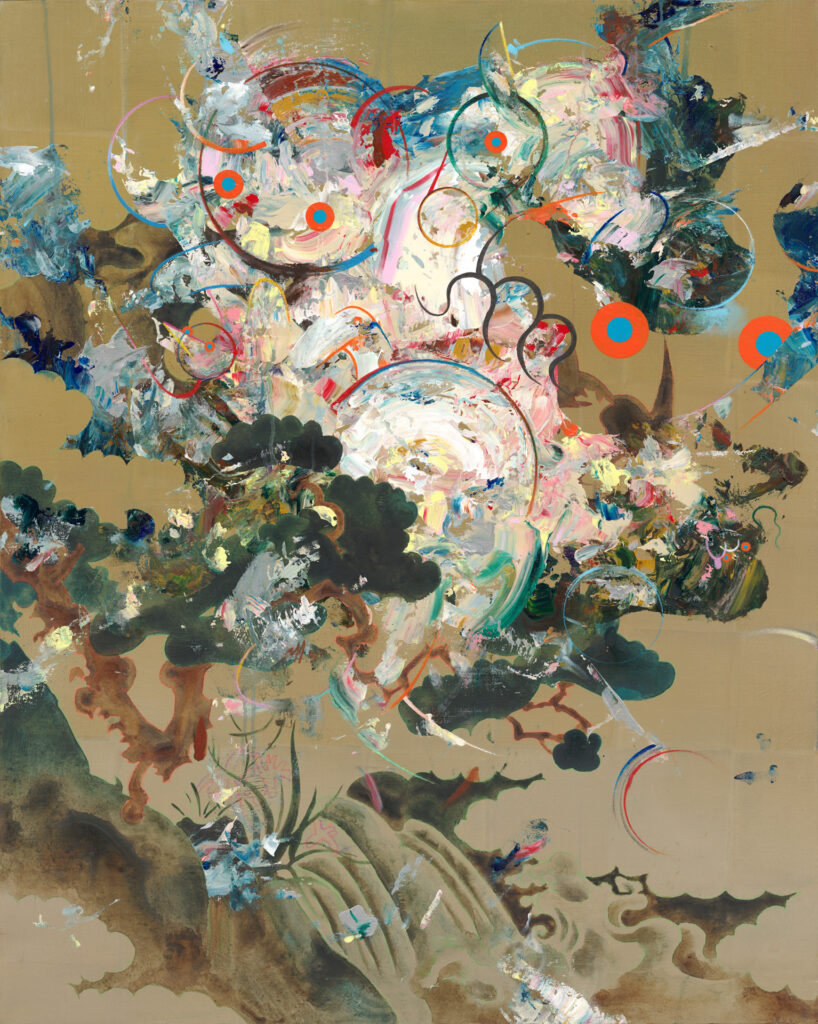 これまで浮世絵の概念を取り入れてきた大河がアブストラクトペインティングの手法を取り入れ、新たなアプローチに取り組んだ新作群を初公開。日本美術の系譜を感じさせつつ、グラフィカルな構成力が結びついた独自のスタイルは必見だ。