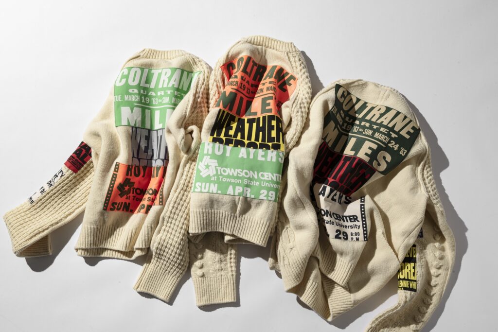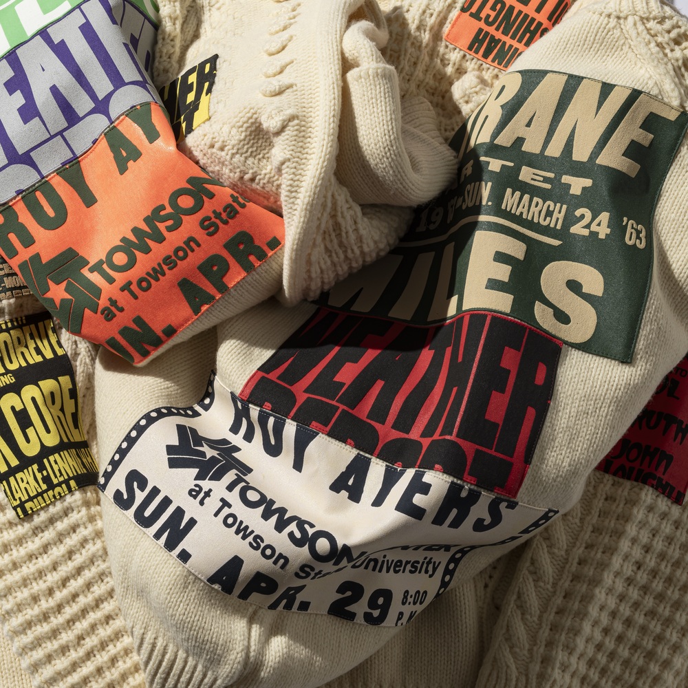 そんなラムダンが「1960年代〜1970年代のコンサートポスターに宛てたラブレター」と称した新作コレクションを制作。自ら手がける最上級カジュアルブランド〈DIE DREI BERGE〉のために、この時代のジャズポスターを象徴する鮮烈なタイポグラフィーと色彩に着想を得た2点のアイテムをデザイン。