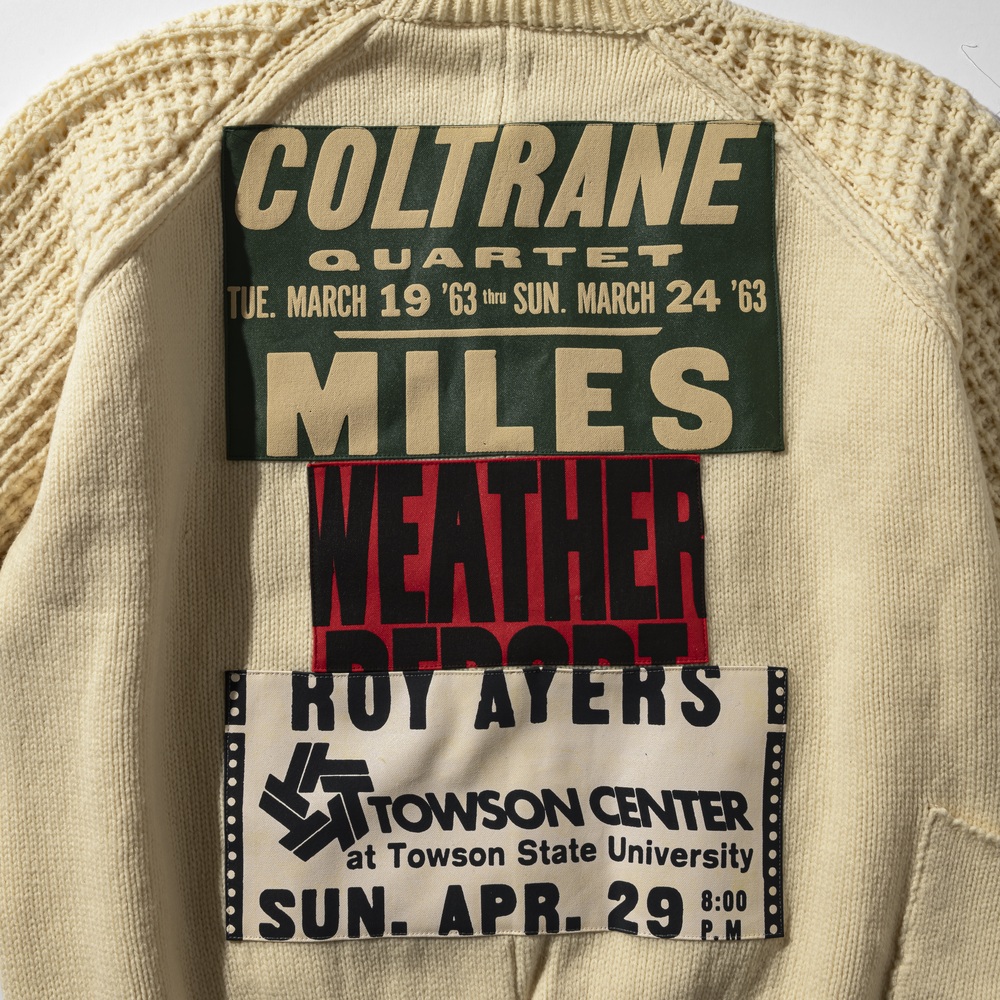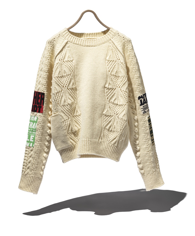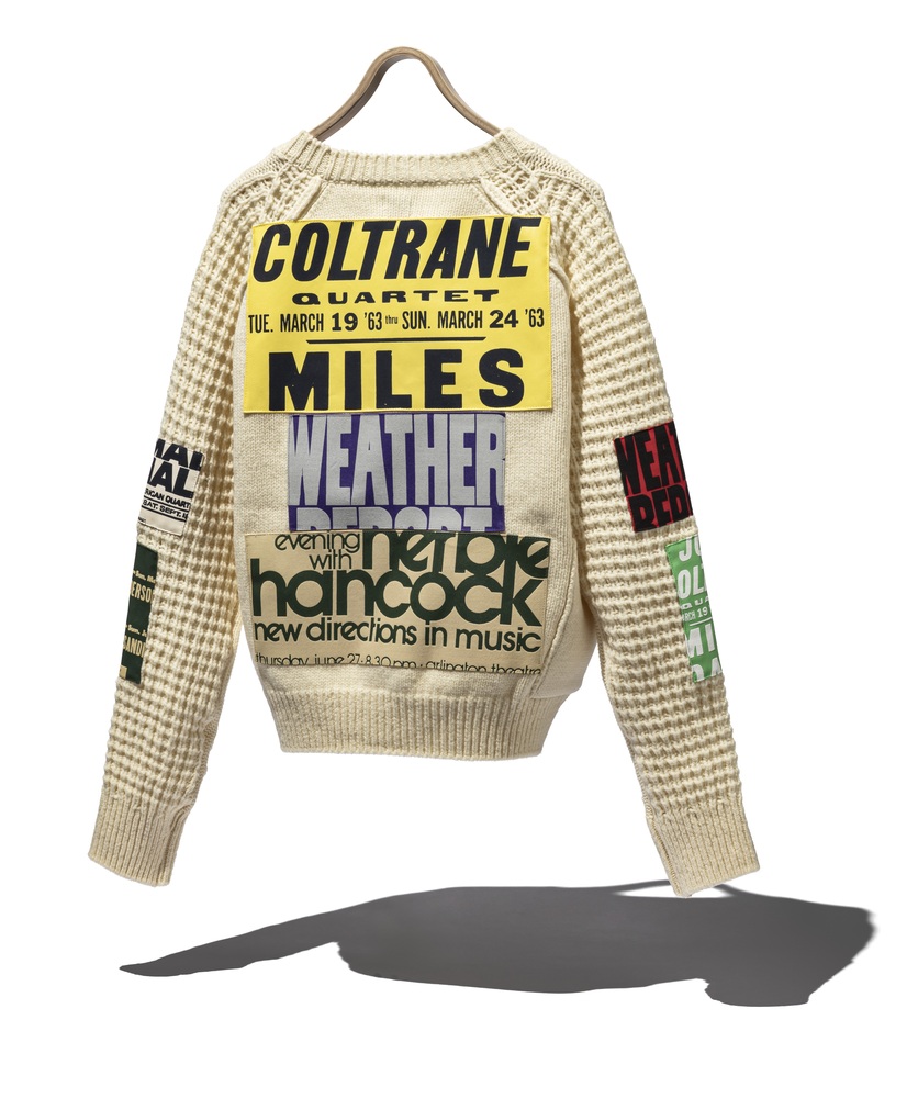 1960年代を中心にイギリスで流行した「モッズカルチャー」にインスパイアされたラウンドネックセーター。当時の若者が応援しているフットボールチームや行きつけのパブのロゴタオルを自分の服に縫い付けてカスタマイズしていたことをヒントに、両袖と後見頃をジャズレジェンドたちのコンサートポスターをモチーフにしたパッチで彩りました。カラフルなパッチは全部で9種類。パリの〈DIE DREI BERGE〉のアトリエにて、シルクスクリーンプリントが施されている。