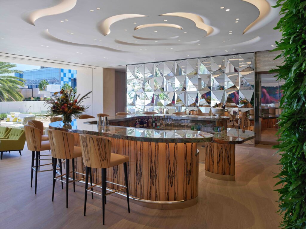 最上階のプライベートVIPラウンジは、30 Montaigneの親密な雰囲気を彷彿とさせ、緑豊かな静かなテラスからはビバリーヒルズを一望できる。