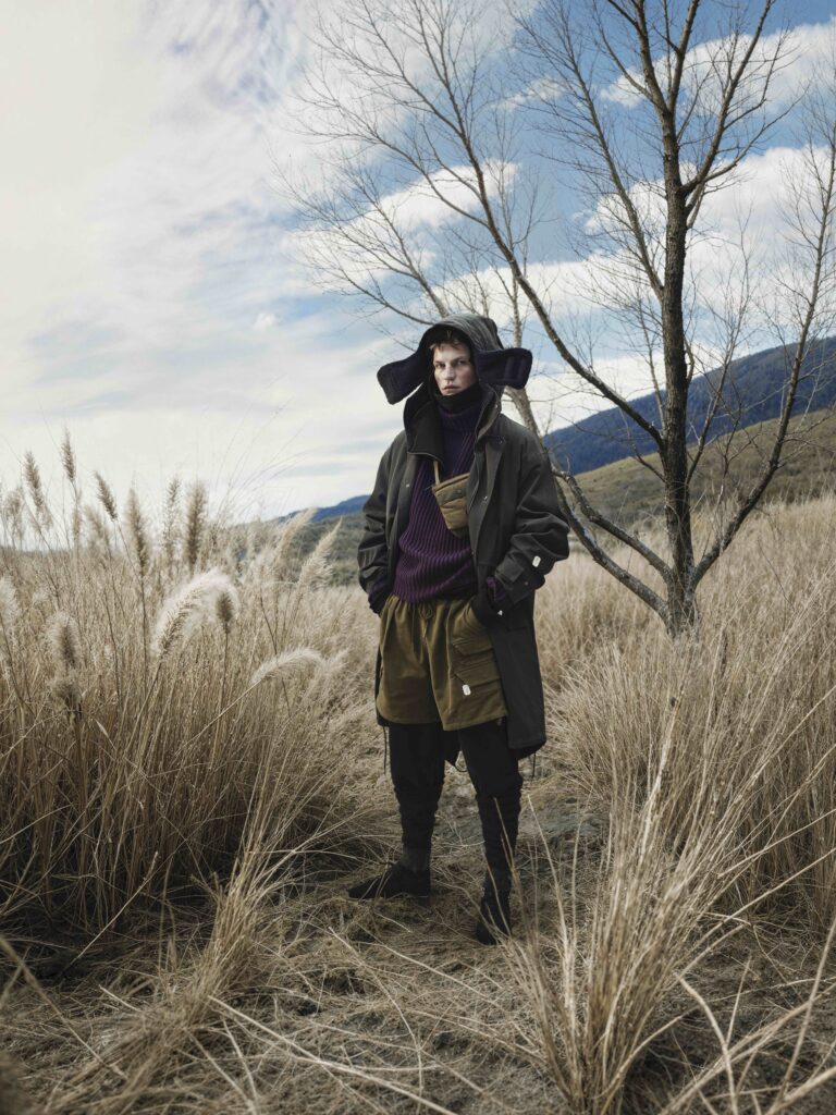 サミュエルのデザインは、複数の環境を横断しながらも、途切れない動きを可能にしている。 「それは“冒険者”という原型です」と語るように、シルエットには流れるような動きを促すゆとりが与えられ、ネックラインは身体が自然に呼吸できるよう開いていく。ハードウェアは装飾ではなく、構造として機能的に組み込まれている。サミュエルは、自らのスタイルとビジュアルをより精緻に削ぎ落とし、備え・能力・コントロールというメッセージを鮮明に描き出している。