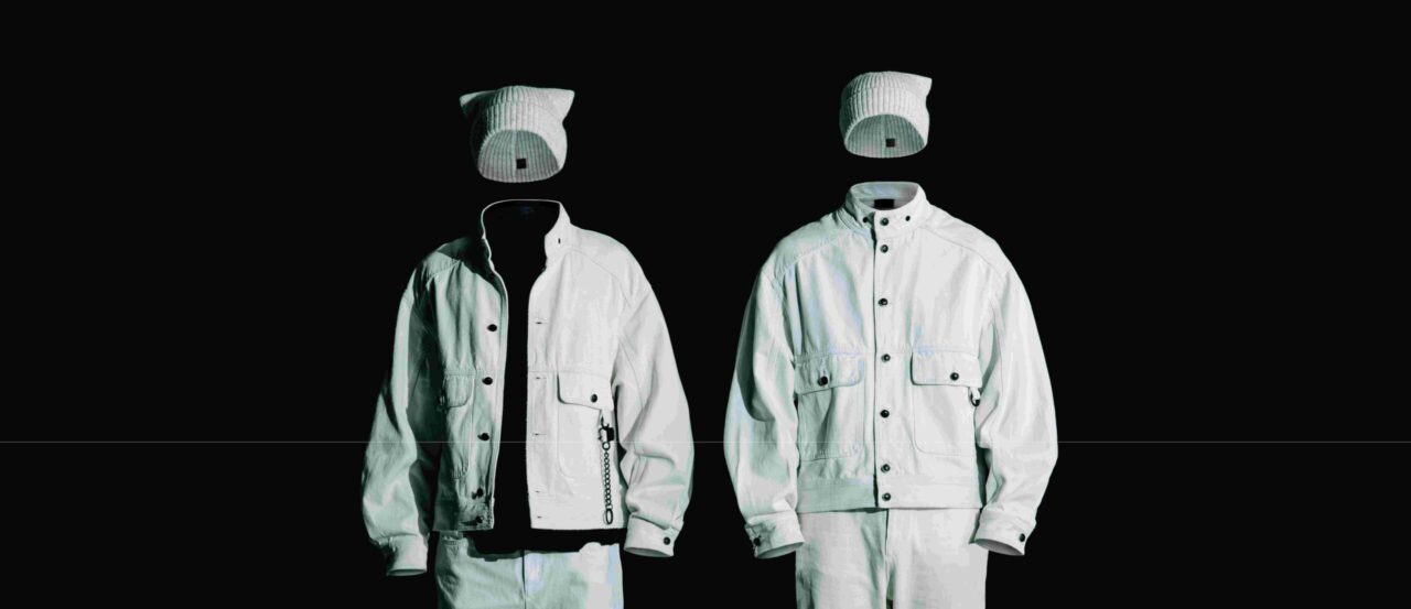 ブランド初となるオールホワイトのデニムジャケットとジーンズが、この「ACCEPTANCE」コレクションを象徴として、「自らの影を受け入れる瞬間」から、「光があるからこそ影が生まれる」という理解を表す。ブラックのアイテムとの対比によりホワイトの存在感が増し、コレクションに強さと深みを与えている。